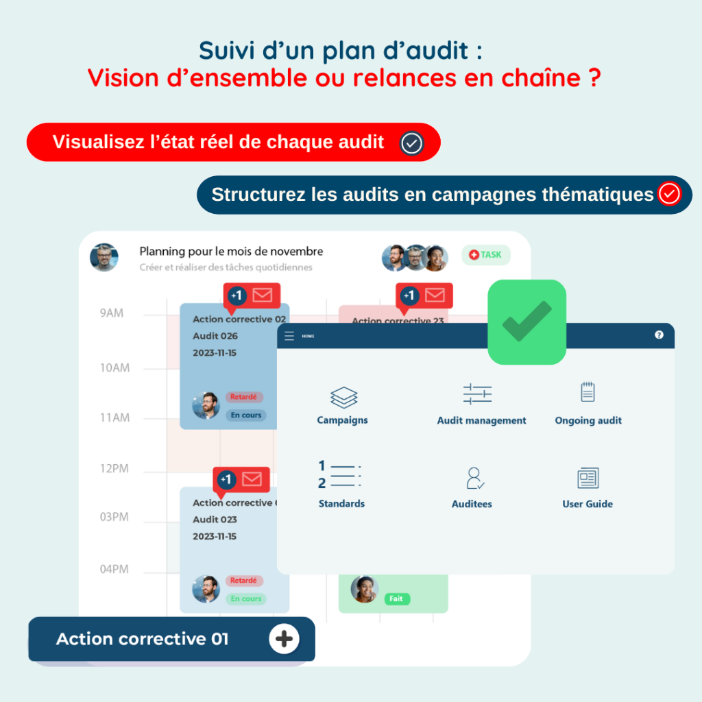 Suivre l’avancement d’un plan d’audit, ce n’est pas juste cocher des cases. C’est savoir où on en est, qui fait quoi, et détecter rapidement les écarts. Avec Auditool : – Suivez l’état et le taux de conformité de chaque audit – Visualisez les retards, les non-conformités, et les revues à mener – Consolidez vos audits […]