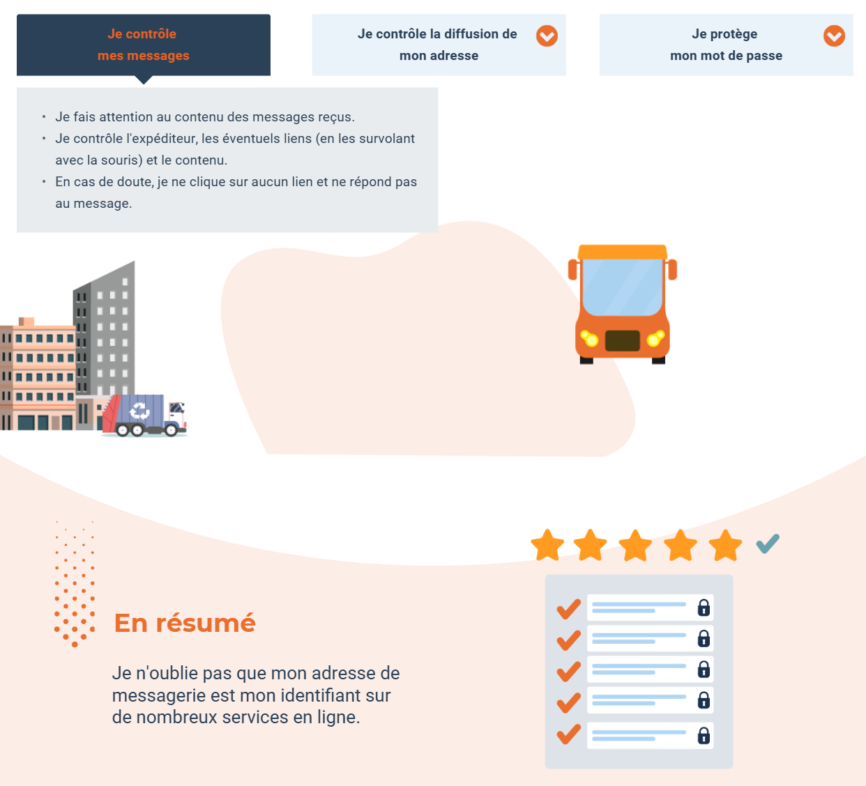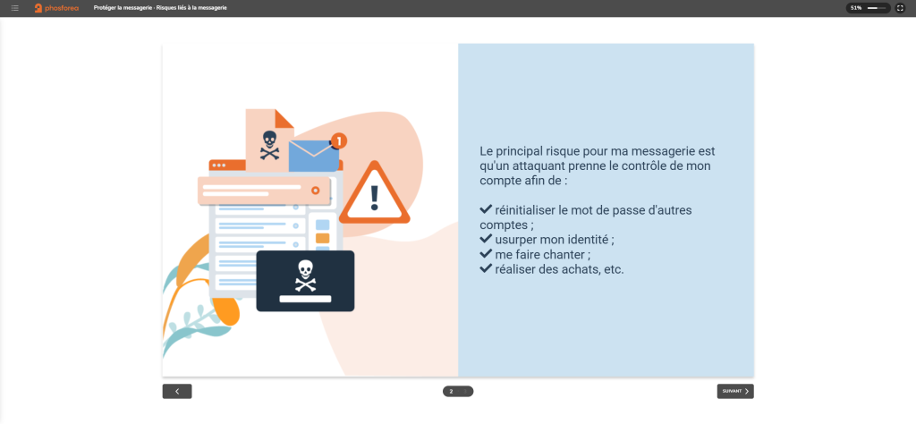 • Appliquer des conseils concrets pour renforcer la sécurité de votre boîte mail : mots de passe robustes, double authentification, vigilance face aux messages suspects. 2/2