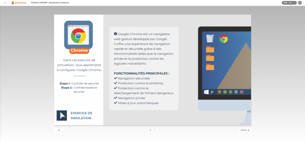 Pour sensibiliser efficacement vos collaborateurs à la cybersécurité, il est recommandé de privilégier un format court, dynamique et facilement accessible, comme le micro-learning. Ce format permet de traiter un sujet à la fois (mot de passe, phishing, messagerie, etc.) de manière claire et ciblée, tout en respectant les contraintes de temps des équipes. Des modules interactifs, des mises en situation concrètes ou des simulations d’attaque peuvent renforcer l’impact pédagogique. Ce type de format s’adapte à tous les niveaux de compétence et favorise une appropriation progressive des bons réflexes de sécurité.
